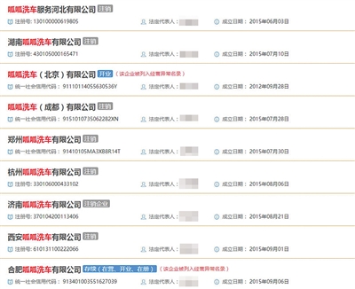 記者昨天查詢國(guó)家企業(yè)信用信息公示系統(tǒng),發(fā)現(xiàn)上述提及的各地分公司已大多數(shù)被注銷,沒(méi)有顯示注銷的,也已被列入經(jīng)營(yíng)異常名錄。