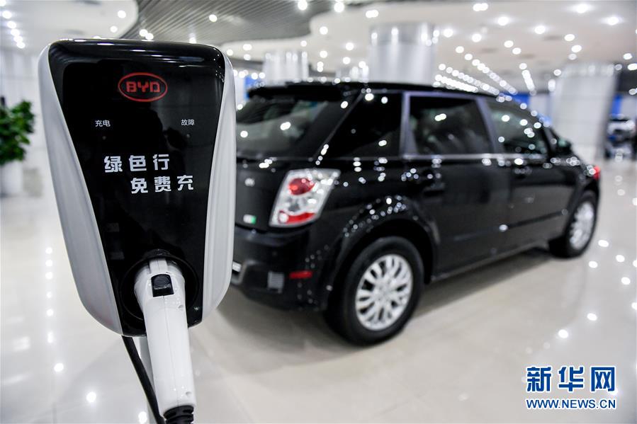 這是在深圳比亞迪總部展廳拍攝的比亞迪新能源汽車(chē)和充電樁展品(2018年11月30日攝)。 新華社記者毛思倩攝