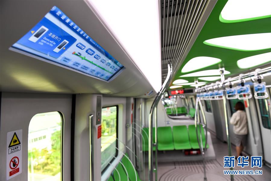 這是在深圳比亞迪總部拍攝的“云軌”車(chē)廂內(nèi)部(2018年11月30日攝)。 新華社記者毛思倩攝