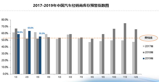 3月,汽車經(jīng)銷商庫存預(yù)警指數(shù)為55.3%,仍然位于警戒線之上。流通協(xié)會方面表示,增值稅下調(diào)及部分地區(qū)國五/國六車型切換導(dǎo)致部分消費(fèi)者持幣觀望,汽車市場整體銷量不佳。再加上經(jīng)銷商季度末為拿返利主動增加庫存,經(jīng)營壓力仍然較大。