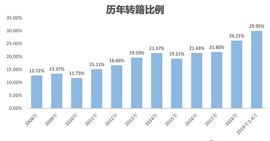 4月全國二手車市場交易量為120.06萬輛,環(huán)比下降4%,同比增長4.29%;1-4月,二手車累計銷售445.63萬輛,同比增長2.61%,跨城市交易額比例達到29.95%。羅磊表示,隨著全國各區(qū)域二手車流通的壁壘逐步消除,二手車全國自由流通越來越快捷,這一利好因素促使國內(nèi)二手車交易轉籍比例在過去10年里呈逐年上升趨勢。