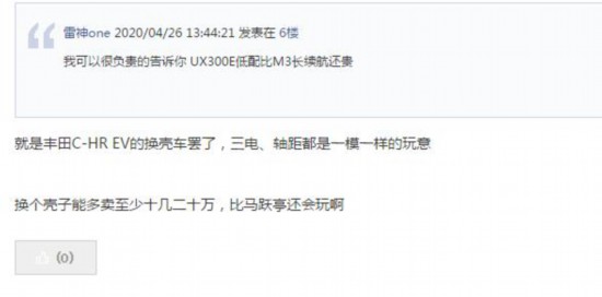 此外,雷克薩斯上月推出的首款純電車型UX300e,新車售價超出30萬元,根據(jù)補貼新政,今年7月22日后將無法享受新能源補貼。同時,從論壇上消費者的反應來看,對其似乎也不:太看好,不禁讓人對雷克薩斯在華電動車“頭炮”能否打響產生擔憂。