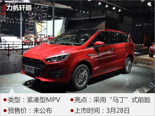 在2016年11月舉行的廣州國際車展上,力帆汽車對(duì)外發(fā)布了全新MPV—軒朗,其“馬丁”式前臉設(shè)計(jì)令人印象深刻,同時(shí)運(yùn)動(dòng)化輪圈與下沉式車頂?shù)拇钆湟彩窍嗟靡嬲谩?nèi)飾方面,力帆軒朗以黑色為主,中控臺(tái)下方按鍵布局較為簡潔,實(shí)用性較高。力帆軒朗搭載了1.5L渦輪增壓和2.0L自然吸氣兩款發(fā)動(dòng)機(jī),前者匹配的是8速自動(dòng)變速箱或5速手動(dòng)變速箱,后者則匹配的是5MT或CVT變速箱。新車將于3月28日正式上市。