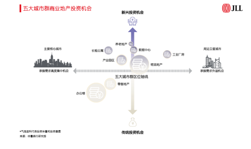 仲量聯(lián)行中國(guó)區(qū)研究部總監(jiān)姚耀表示:“五大城市群中的主要核心城市將在支撐傳統(tǒng)的辦公樓和零售地產(chǎn)市場(chǎng)的同時(shí),催生產(chǎn)業(yè)園區(qū)、長(zhǎng)租公寓等新興投資機(jī)會(huì);周邊衛(wèi)星城則將承接需求外溢,物流地產(chǎn)將迎重大利好,工業(yè)廠房、數(shù)據(jù)中心等也將獲得投資者的關(guān)注。隨著各物業(yè)類(lèi)型的需求進(jìn)一步演進(jìn),五大城市群將推動(dòng)商業(yè)地產(chǎn)投資機(jī)會(huì)愈發(fā)多元化。”