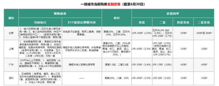 同時,房貸利率下限正式取消。此前全國首套房貸款利率下限為LPR-20BP,二套房為LPR+20BP,5月17日以后,不再設(shè)置全國層面首套房和二套房貸款利率政策下限。截至目前,全國超250城已取消房貸利率下限。國家金融監(jiān)管總局數(shù)據(jù)顯示,今年5月份首套房貸平均利率3.45%,二套房貸平均利率3.9%,分別比上年同期下降0.55和1個百分點。