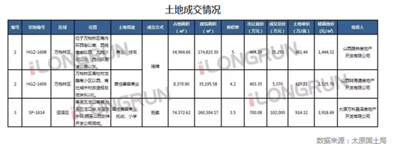 朗潤解析:本周土地成交三宗,其中SP-1614位于五龍口,本地塊約111畝,總建面約26萬,樓面價3,918元/㎡,屬中小規(guī)模體量,規(guī)劃有幼兒及小學用地,周邊多個新建和在建的居民小區(qū),人口眾多,且人文氣息濃厚,發(fā)展成熟,萬科以10.2億元拿下SP-1614五龍口一商住地,溢價率30.6%,該宗地同時還需配建5%保障房,預(yù)計未來將會是萬科在太原的另一個高端項目;HGZ-1609為小米國際項目用地;HGZ-1608位于萬柏林區(qū)南內(nèi)環(huán)西街以南、西苑南街以西、九院沙河以北、西北環(huán)高速公路以東,由路橋二公司開發(fā)案名擬為“路橋金澤華府”預(yù)計為品質(zhì)剛需項目。