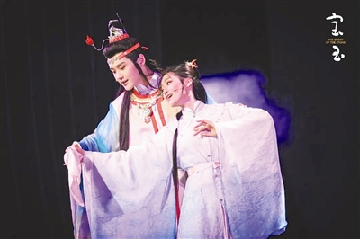 作為經(jīng)典IP改編的原創(chuàng)音樂劇,《寶玉》從創(chuàng)作過程到成型演出,持續(xù)引起外界廣泛關(guān)注和熱烈反響?!秾氂瘛氛缙涿?,以“寶玉”視角向眾人鋪開大觀園的離合悲歡。在有緣人對(duì)寶玉命運(yùn)的循循引領(lǐng)下,逐一展露寶玉的覺醒、黛玉的哀婉風(fēng)骨、寶釵的隱忍綿長、王熙鳳的潑辣悲愴等人物特質(zhì)。全劇以歌入情,以舞動(dòng)人,為觀眾呈現(xiàn)了一個(gè)紅樓獨(dú)特的音樂劇表達(dá)。對(duì)于耳熟能詳?shù)慕?jīng)典片段“寶黛共讀西廂”“黛玉葬花”“金玉良緣大婚”等,則通過“片段式敘事”與“閃回蒙太奇”手法串聯(lián)而起。