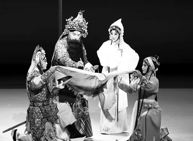 “劇本乃一劇之本,《顏真卿》的劇本基礎非常好,不僅有強烈的矛盾沖突,故事情節(jié)也非常抓人,劇情從一開始就進入了緊張狀態(tài),之后的設計又環(huán)環(huán)相扣?!敝旖B玉特別提及,新戲創(chuàng)作有時會“把唱詞寫得別別扭扭”,《顏真卿》有難得的詩意,而且接地氣,格式、韻腳都很契合京劇音樂韻律,“《顏真卿》的聲腔強調(diào)一個‘韻味’,有韻味才能吸引人?!敝旖B玉同時注重結(jié)合作品的時間背景,融入管子音樂等標志性的西北地域特色,在彰顯“京朝派”醇厚底蘊的基礎上,為全劇注入一抹熾烈濃艷的唐時氣韻。