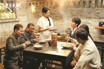在真實的歷史情境中,每個人物做出的選擇都需要巨大的勇氣,每條道路在邏輯上都成立,卻都伴隨著各自代價。《長樂長歌》為觀眾呈現(xiàn)了真實歷史和人性的復雜面貌。在回到后方投身工業(yè)建設(shè)之前,顧長庚是一名軍人。戰(zhàn)場經(jīng)歷給他留下了兩點影響:一是戰(zhàn)友的死促使他投身新的道路,從前線的槍林彈雨到后方的機器轟鳴,他換了種報國方式。二是腦內(nèi)殘留著隨時可能危及生命的彈片,這讓他在面對感情的時候猶豫再三。而在遇見顧長庚之前,姜南是電影明星,從未想過自己還有另一種活法。在建設(shè)窯洞工廠的過程中,她從旁觀者變成參與者,不僅出錢出力,還提出了“三班倒”的制度,提高工廠的效率。除了主角,《長樂長歌》的配角群像同樣鮮活立體。這些復雜多面的人物,不再非黑即白,以不同抉擇展現(xiàn)歷史的復雜敘事,破除了嚴肅題材的刻板印象。讀懂這些人物的命運沉浮,觀眾也就明白了抗戰(zhàn)烽火中那些抉擇的重量。