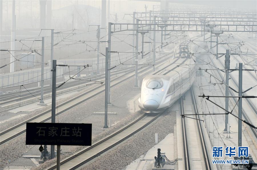 一輛動車組列車駛離石家莊火車站(1月9日攝)。 1月10日零時起,全國鐵路實行新的列車運行圖,增開旅客列車285.5對,其中增開動車組列車281.5對。運行圖調(diào)整后,全國鐵路開行旅客列車總數(shù)達(dá)到3142對,其中動車組列車1980.5對。新華社記者 牟宇 攝