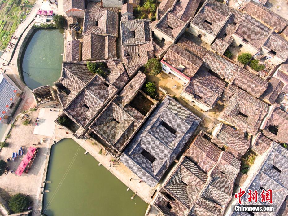 12月10日,航拍位于江西金溪縣有著600多年歷史的中國歷史文化名村、中國傳統(tǒng)村落竹橋古村,俯瞰全村,形似一柄巨扇。該村現(xiàn)保存有明代所建民居8幢,明代祠堂1幢,其余為清代建筑,青磚灰瓦,樸實(shí)素雅,為贛派建筑最典型的代表。村前溪水長流,良田萬頃,村后茂林修竹,鳥鳴樹幽,身歷其境,如入畫中。傅建斌 攝