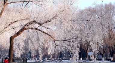2025年12月14日,遼寧沈陽北運河岸出現(xiàn)霧凇景觀,吸引市民駐足觀賞拍照。黃金崑攝(人民圖片網(wǎng))