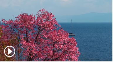 冬日限定浪漫!云南撫仙湖畔下起粉色櫻花“雪”