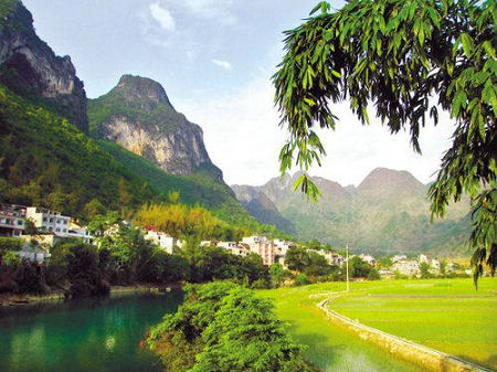 巴馬長壽村盤陽河逶迤地流淌,串起了一個(gè)個(gè)小村落
