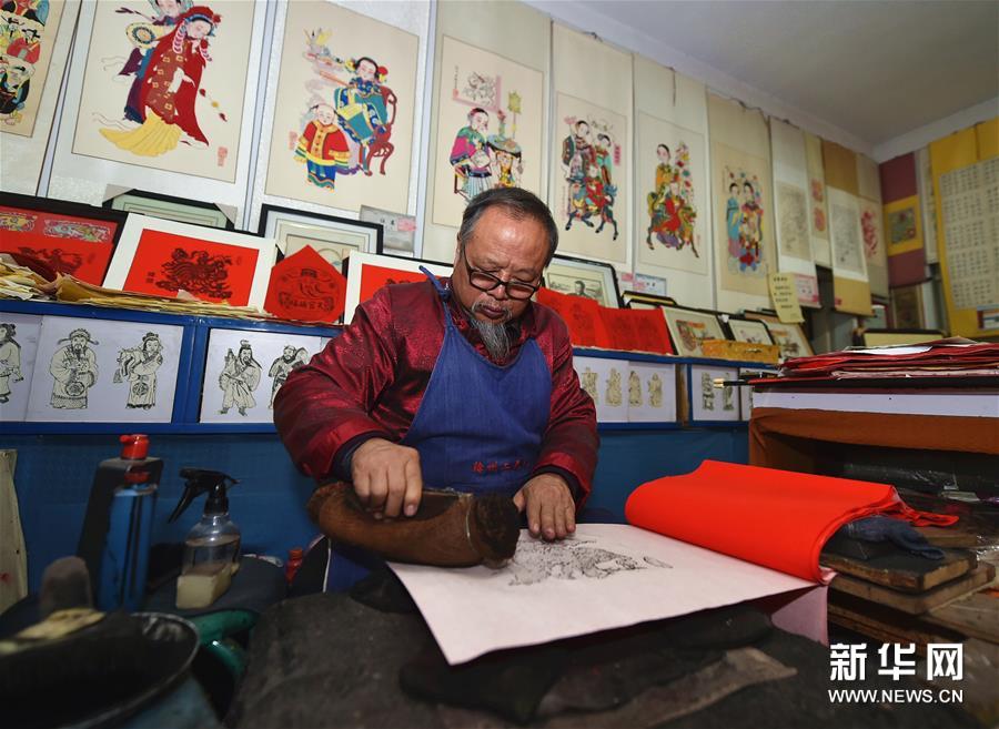 春節(jié)期間,山西省新絳縣的絳州木版年畫(huà)傳承人吳百鎖忙得不可開(kāi)交,來(lái)購(gòu)買“吉祥如意”“雄雞一唱天下白”等主題年畫(huà)的顧客絡(luò)繹不絕。山西省非物質(zhì)文化遺產(chǎn)絳州木版年畫(huà)發(fā)端于宋金,興盛于明清,從選料到雕刻再到上色都非常講究,一幅年畫(huà)的制作需要七八道精細(xì)工序。隨著時(shí)代的變遷,目前已鮮有專職雕刻、印制年畫(huà)的匠人。擁有嫻熟雕刻技藝的吳百鎖在傳承傳統(tǒng)工藝的基礎(chǔ)上,積極創(chuàng)作現(xiàn)代題材的作品,希望通過(guò)自己的創(chuàng)新讓更多少年兒童了解并愛(ài)上木版年畫(huà),讓這門幾乎失傳的技藝綻放新的光彩。新華社記者 曹陽(yáng) 攝