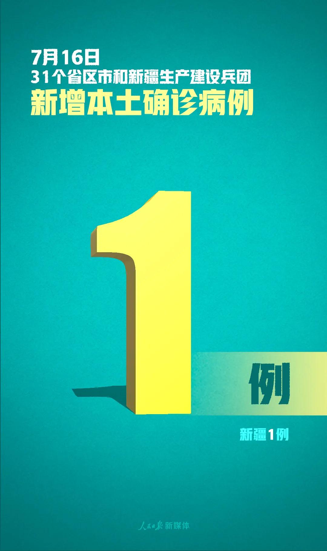 7月16日0—24時,31個?。ㄗ灾螀^(qū)、直轄市)和新疆生產(chǎn)建設(shè)兵團(tuán)報告新增確診病例10例,其中境外輸入病例9例(廣東4例,上海1例,江蘇1例,山東1例,廣西1例,陜西1例),本土病例1例(在新疆);無新增死亡病例;新增疑似病例1例,為境外輸入病例(在上海)。