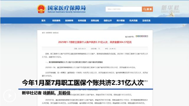 【簡介】記者8月31日從國家醫(yī)保局獲悉,2025年1月至7月職工醫(yī)保個人賬戶共濟人次2.31億,金額304.57億元。