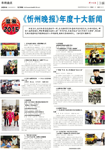 回首2015,我們和身邊這座城市一樣,在無數(shù)的努力和喜悅中經歷著變化,忙碌而感動。哪些人值得被銘記,哪些事溫暖你我的心房?年終歲首,本報評選出“2015年度十大新聞”,愿這些充滿正能量的佳作能燃起我們心中的激情,鼓勵大家砥勵前行。(按刊登日期排列)