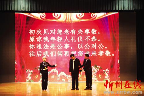 1月27日至29日,偏關(guān)縣公安局交警大隊交通安全文藝宣傳隊在隊長們的帶領(lǐng)下,先后走進(jìn)市實驗中學(xué)、市客運中心、國家電網(wǎng)忻州供電分公司進(jìn)行了三場演出,用自編自導(dǎo)自演、群眾喜聞樂見的“漫翰調(diào)”、“二人臺”、北路梆子、民歌等一系列極具地域文化特色的地方小戲、說唱歌舞等曲藝形式進(jìn)行宣傳演出,贏得滿堂喝彩,場場掌聲雷動。作為春節(jié)回家路上的一道文化盛宴,這次春節(jié)前的平安出行警示教育“送安全下鄉(xiāng)”巡演是我市公安交警精心策劃、編排的春運交通安全宣傳行動之一。28日,市客運中心人頭攢動,熙熙攘攘,大廳外懸掛的橫幅標(biāo)語“守護(hù)您的平安出行,保障道路安全暢通是每一位交警的神圣職責(zé)!”格外醒目。候車大廳里,暖意融融,市公安局交警支隊組織的春運交通安全文藝演出正在進(jìn)行,交警版的民間小調(diào)《拜大年》、小品《警鐘聲聲》、雙簧《二愣子》等節(jié)目令人賞心悅目、捧腹不止。在歡笑之余,提醒和教育廣大群眾自覺抵制不文明、不安全交通行為,觀看演出的旅客和客車司機(jī)紛紛感慨,這樣的宣傳教育生動形象,人人愛看且耐人尋味,警示作用很大。