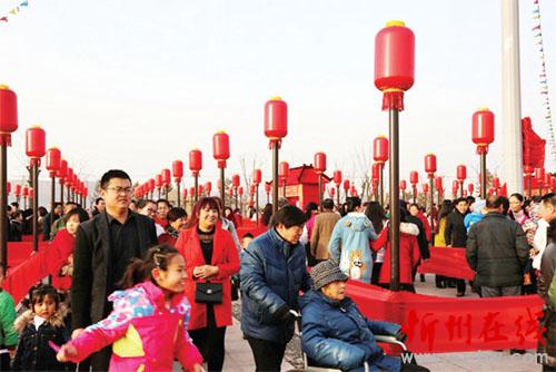 煥然一新的寬敞場地,統(tǒng)一的燈桿、火紅的燈籠、嗩吶的樂聲、動人的傳說……河曲九曲黃河燈游會開門迎客了。方圓十幾里的河曲人扶老攜幼轉這個燈游會,沾喜氣。伴著舒緩的音樂,一撥一撥的游客穿行于燈陣中,或觀賞彩燈,或擊鼓祝福,或拍照留念。