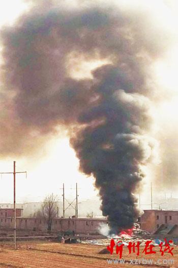 忻府區(qū)樊野村村北,路東廢棄的一排小二樓后面,村民焚燒垃圾,黑煙滿天,空氣中彌散著嗆人的氣味,從6日下午三、四點(diǎn)一直燒到晚上。這樣集中焚燒垃圾對周圍環(huán)境造成很大污染,望有關(guān)單位進(jìn)行監(jiān)管。(一網(wǎng)友攝于3月6日晚七點(diǎn))