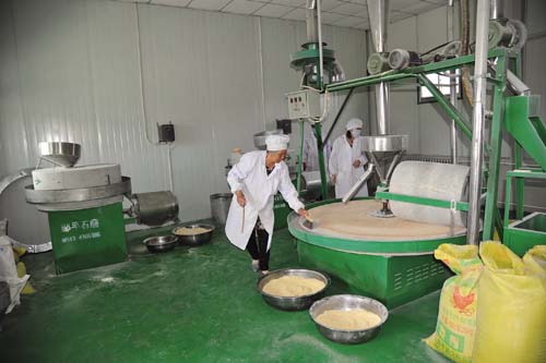 代縣景坤大地貿(mào)易有限公司于去年6 月份開始用石碾石磨加工生產(chǎn)小麥面粉、黃米面粉、小米和小雜糧調(diào)理面粉等。由于所加工生產(chǎn)的糧食均經(jīng)過篩選、清洗、甩干,再加之精碾細(xì)磨、綠色有機(jī)、營(yíng)養(yǎng)豐富、原汁原味,不添加任何添加劑,深受大城市市民的歡迎,供不應(yīng)求,成為搶手貨?,F(xiàn)已銷往北京、太原等地。(石俊文 劉睿 攝影報(bào)道)