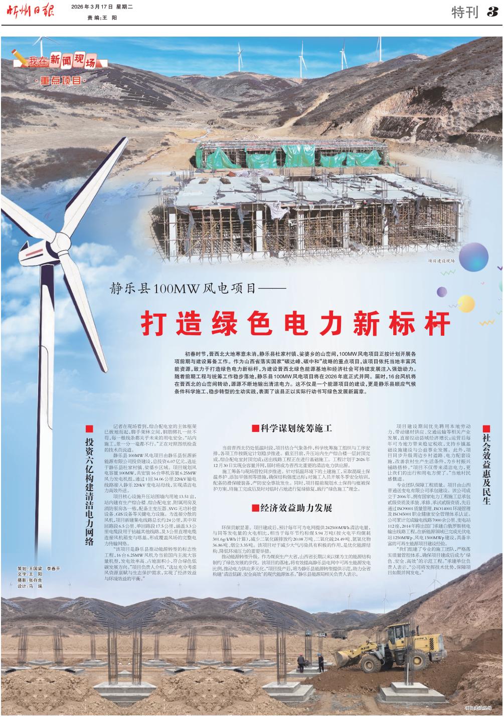 初春時(shí)節(jié),晉西北大地寒意未消,靜樂(lè)縣杜家村鎮(zhèn)、娑婆鄉(xiāng)的山巒間,100MW風(fēng)電項(xiàng)目正按計(jì)劃開(kāi)展各項(xiàng)前期與建設(shè)籌備工作。作為山西省落實(shí)國(guó)家“碳達(dá)峰、碳中和”戰(zhàn)略的重點(diǎn)項(xiàng)目,該項(xiàng)目依托當(dāng)?shù)刎S富風(fēng)能資源,致力于打造綠色電力新標(biāo)桿,為建設(shè)晉西北綠色能源基地和經(jīng)濟(jì)社會(huì)可持續(xù)發(fā)展注入強(qiáng)勁動(dòng)力。隨著前期工程與統(tǒng)籌工作穩(wěn)步落地,靜樂(lè)縣100MW風(fēng)電項(xiàng)目將在2026年底正式并網(wǎng)。屆時(shí),16臺(tái)風(fēng)機(jī)將在晉西北的山巒間轉(zhuǎn)動(dòng),源源不斷地輸出清潔電力。這不僅是一個(gè)能源項(xiàng)目的建設(shè),更是靜樂(lè)縣順應(yīng)氣候條件科學(xué)施工、穩(wěn)步轉(zhuǎn)型的生動(dòng)實(shí)踐,表面了該縣正以實(shí)際行動(dòng)書(shū)寫(xiě)綠色發(fā)展新篇章。