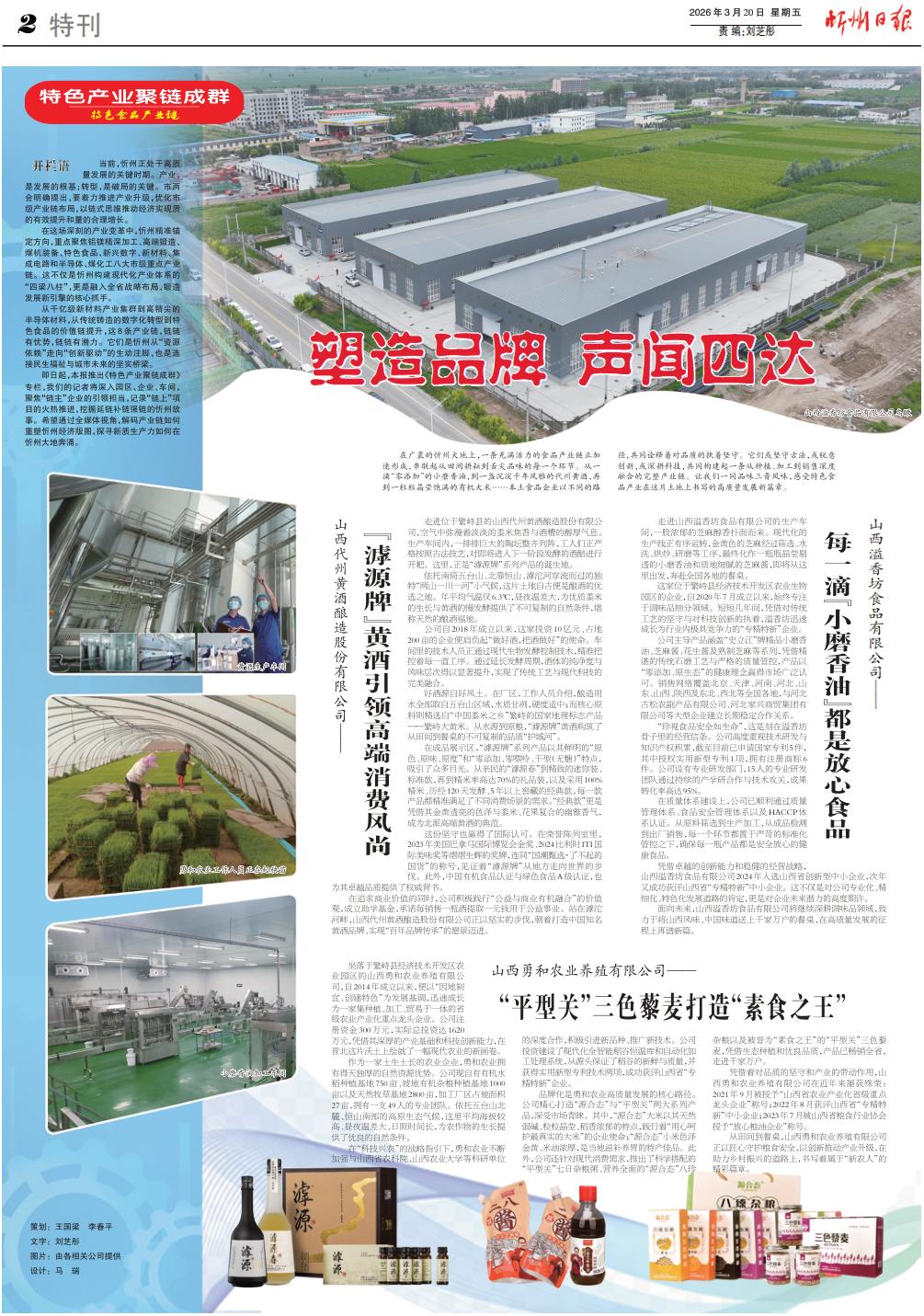 在廣袤的忻州大地上,一條充滿活力的食品產業(yè)鏈正加速形成,串聯(lián)起從田間耕耘到舌尖品味的每一個環(huán)節(jié)。從一滴“零添加”的小磨香油,到一盞沉淀千年風雅的代州黃酒,再到一粒粒晶瑩飽滿的有機大米……本土食品企業(yè)以不同的路徑,共同詮釋著對品質的執(zhí)著堅守。它們或堅守古法,或銳意創(chuàng)新,或深耕科技,共同構建起一條從種植、加工到銷售深度融合的完整產業(yè)鏈。讓我們一同品味三晉風味,感受特色食品產業(yè)在這片土地上書寫的高質量發(fā)展新篇章。