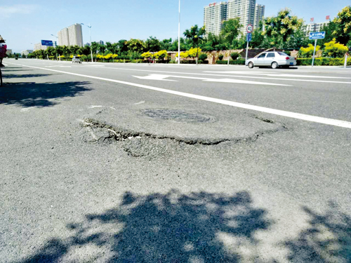 城區(qū)雁門大道南街與團結(jié)中街北巷交叉路口,有一下水井蓋周邊嚴重破損,多處裂縫,存在安全隱患。希望有關(guān)部門盡快予以修補。張林全 攝于8月24日