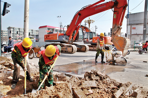圖為勝利街改造工程開挖道路管線探槽現(xiàn)場(chǎng)。梁春霞 攝