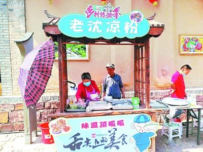 64歲的沈姚付曾是與宋家溝隔河相望的口子上村的貧困戶,以前一家人擠在兩孔年齡比他自己還大的土窯洞里,過著靠天吃飯的日子。2017年5月,他們一家搬進了宋家溝村獨門獨院的新四合院。看到來村里游玩的人多了,精明的沈姚付和老伴在村里支起了第一個涼粉攤。如今,他們一年的收入是過去的七八倍,順理成章摘掉了窮帽子。