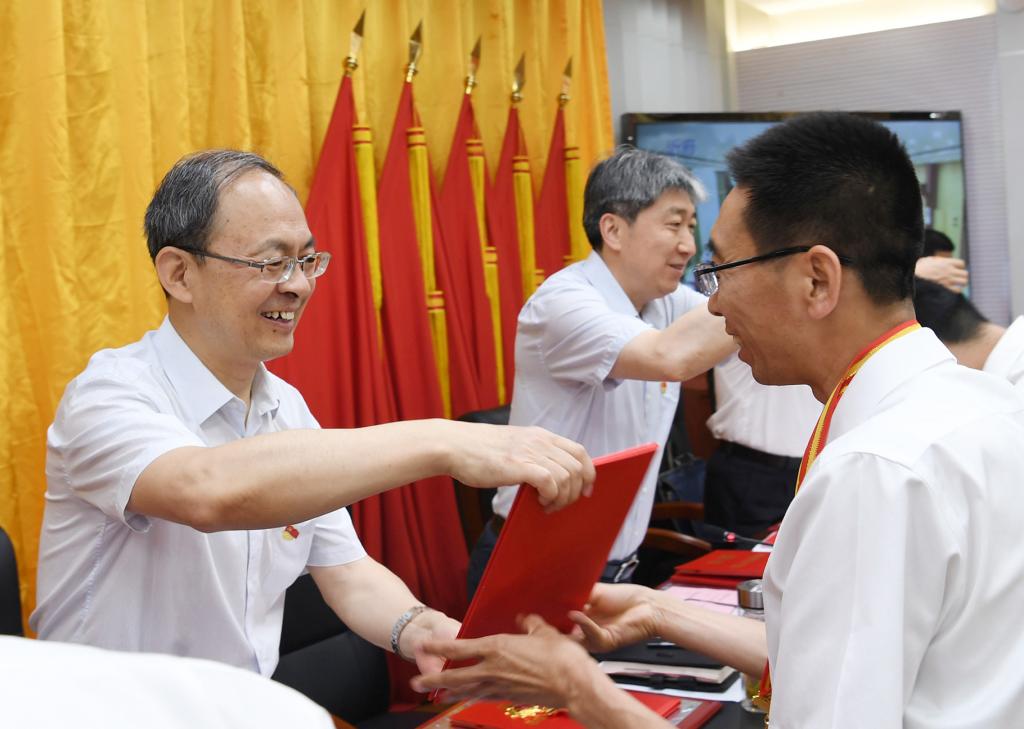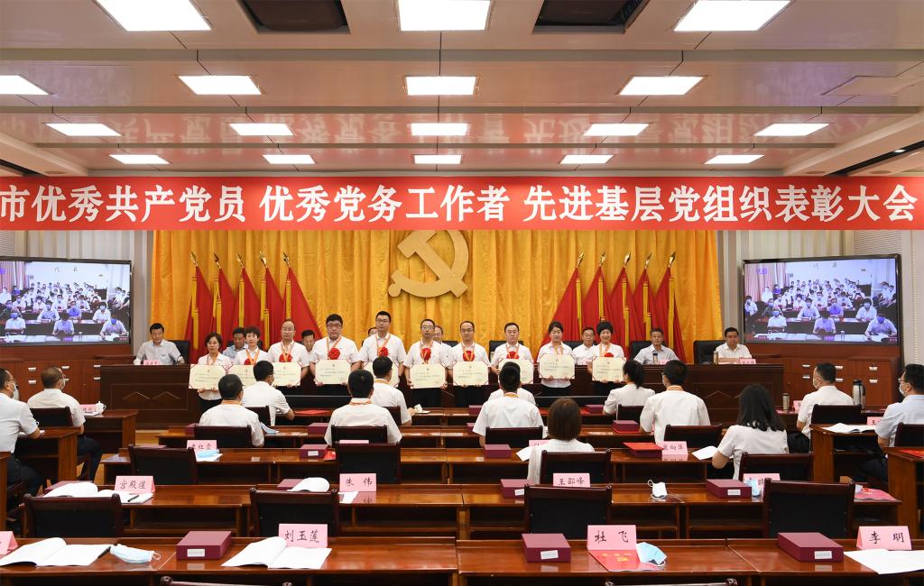 上午8時(shí)30分,大會(huì)正式開(kāi)始,全體起立,奏唱國(guó)歌。來(lái)自全市各行各業(yè)、在工作中取得優(yōu)異成績(jī)的99名共產(chǎn)黨員、100名黨務(wù)工作者和100個(gè)基層黨組織,分別被授予“全市優(yōu)秀共產(chǎn)黨員”“全市優(yōu)秀黨務(wù)工作者”“全市先進(jìn)基層黨組織”榮譽(yù)稱(chēng)號(hào)。受到表彰的優(yōu)秀個(gè)人和先進(jìn)集體代表先后上臺(tái)領(lǐng)獎(jiǎng),會(huì)場(chǎng)響起熱烈掌聲。