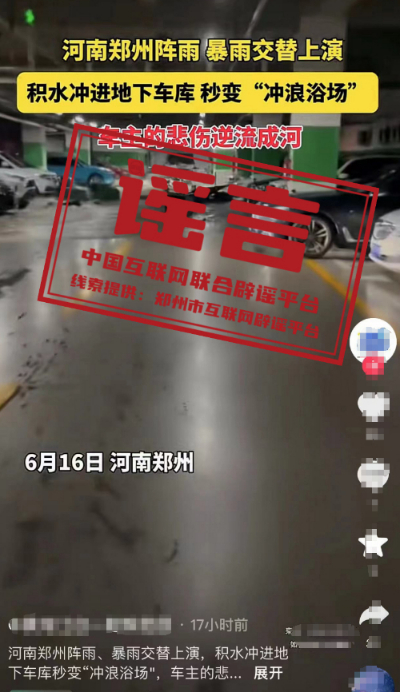 謠言:河南鄭州積水沖進地下車庫?