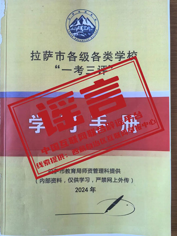 詳情:近期,西藏自治區(qū)拉薩市教育局接到教師反饋,稱有人以拉薩市教育局師資管理科名義,以50元/本的價格,售賣2024年《拉薩市各級各類學(xué)校“一考三評”學(xué)習(xí)手冊》。對此,拉薩市教育局發(fā)布辟謠聲明稱:我局2024年未印發(fā)“一考三評”學(xué)習(xí)手冊,未委托任何機構(gòu)和個人以任何形式向教師售賣2024年《拉薩市各級各類學(xué)?!耙豢既u”學(xué)習(xí)手冊》。請廣大教師保持高度警惕,不信謠、不傳謠、不造謠,謹(jǐn)防上當(dāng)受騙。(來源:“西藏舉報”微信公眾號、“拉薩教育”微信公眾號)