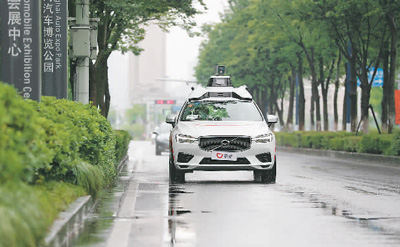 6月27日,上海啟動智能網(wǎng)聯(lián)汽車規(guī)?;痉稇?,一輛智能網(wǎng)聯(lián)汽車在路上行駛。