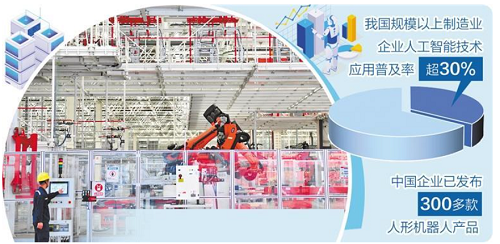 人工智能已具備與產(chǎn)業(yè)大規(guī)模融合的能力,正從單純的技術(shù)工具升維為驅(qū)動(dòng)經(jīng)濟(jì)發(fā)展的核心引擎。數(shù)據(jù)顯示,我國規(guī)模以上制造業(yè)企業(yè)人工智能技術(shù)應(yīng)用普及率已超30%,中國企業(yè)已發(fā)布300多款人形機(jī)器人產(chǎn)品,去年中國開源模型下載量居全球首位,人工智能正從科技攻關(guān)不斷走向場景落地。
