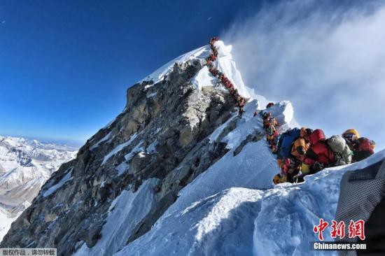 資料圖為數(shù)百名登山者在珠峰登頂之路上排隊。