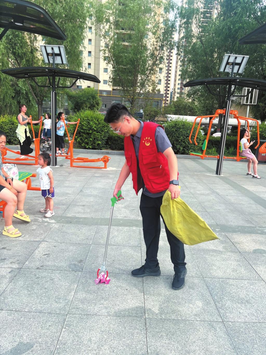 在交通文明勸導(dǎo)中,他不畏嚴(yán)寒酷暑,堅(jiān)守路口和校園周邊,耐心引導(dǎo)市民文明出行,守護(hù)學(xué)生和群眾出行安全。在文體廣場(chǎng)、大型活動(dòng)現(xiàn)場(chǎng),他主動(dòng)清理衛(wèi)生死角、維護(hù)現(xiàn)場(chǎng)秩序,成為城市中一道靚麗的“紅色風(fēng)景”。
