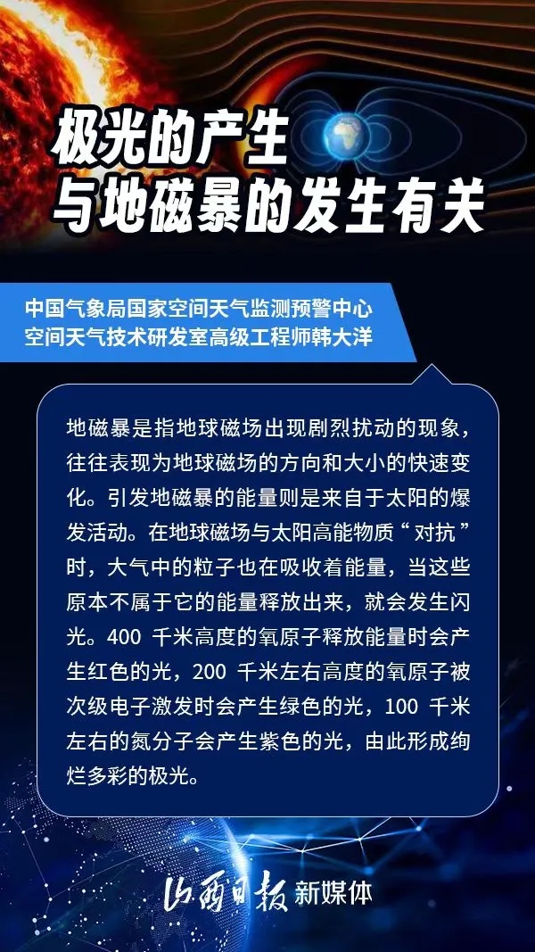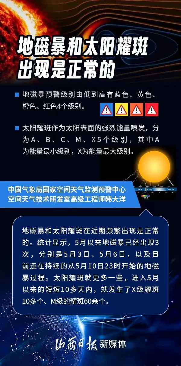 近日,我國(guó)多地出現(xiàn)極光現(xiàn)象,引起人們廣泛關(guān)注。極光現(xiàn)象與地磁暴活動(dòng)密切相關(guān)。地磁暴以及近期頻繁出現(xiàn)的太陽(yáng)耀斑為什么發(fā)生?對(duì)人們的生活有影響嗎?下面一起來看專家解讀。