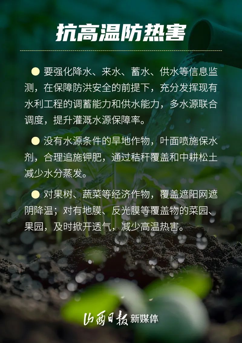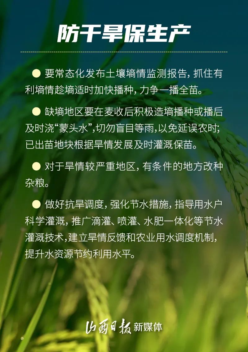 6月—8月是糧食作物生長(zhǎng)發(fā)育和產(chǎn)量形成的關(guān)鍵期。預(yù)計(jì)今年汛期全省可能出現(xiàn)區(qū)域性極端強(qiáng)降水過程并引發(fā)洪澇和次生地質(zhì)災(zāi)害,未來三個(gè)月全省平均氣溫較常年同期偏高。因此,省農(nóng)業(yè)農(nóng)村廳會(huì)同省水利廳、省應(yīng)急管理廳、省氣象局制定《科學(xué)應(yīng)對(duì)旱澇等自然災(zāi)害奮力奪取秋糧和全年糧食豐收預(yù)案》,全力抓好防汛抗旱應(yīng)對(duì)工作,努力奪取全年糧食和農(nóng)業(yè)豐收。