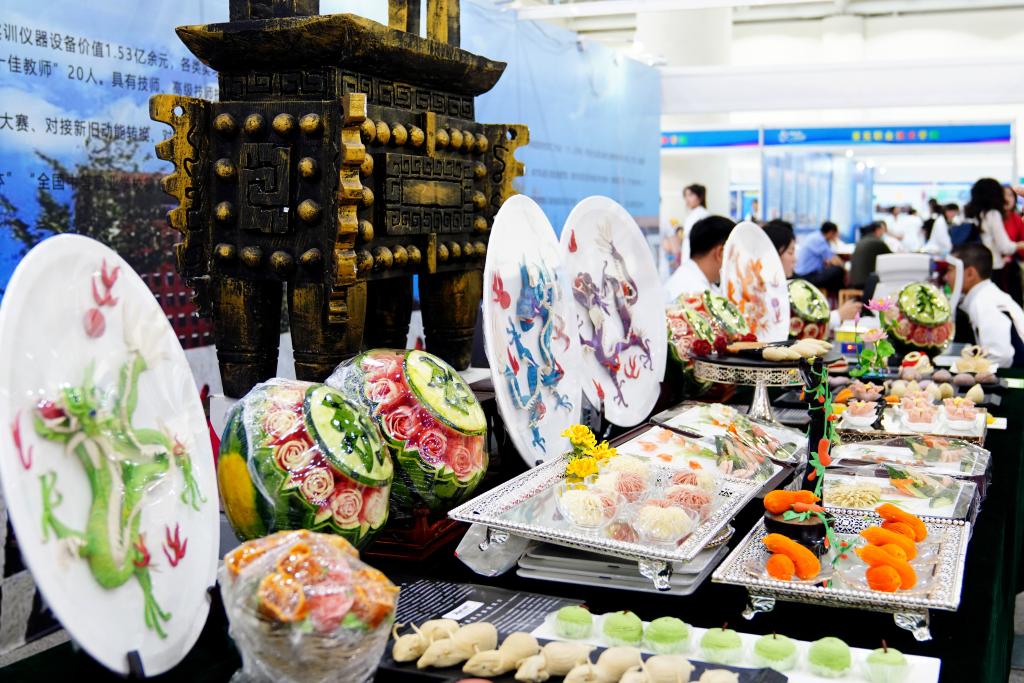 2024年5月11日,在濟(jì)南舜耕國際會(huì)展中心,濟(jì)南市技師學(xué)院展示師生創(chuàng)作的作品。新華社記者 郭緒雷 攝