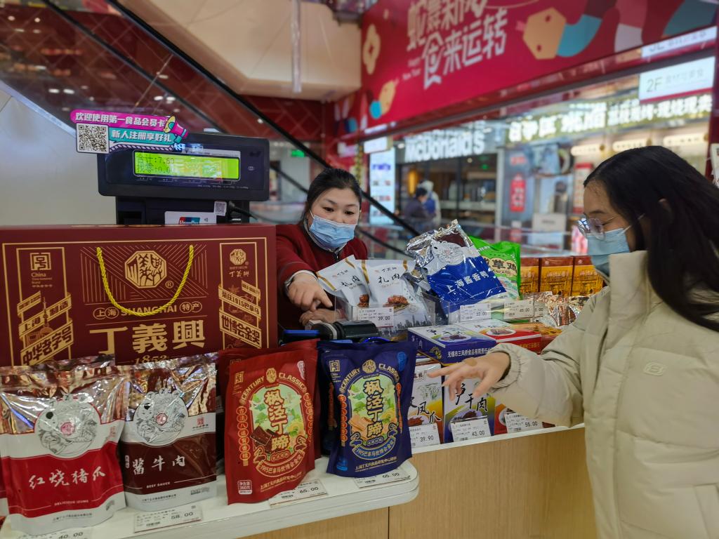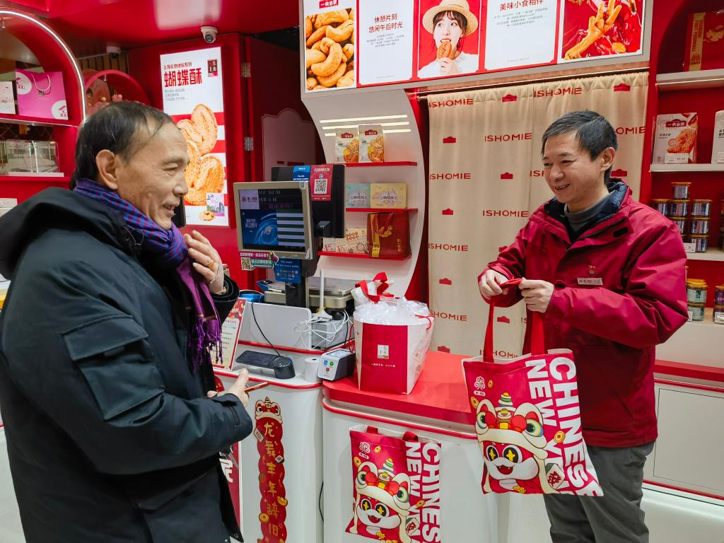 新華社上海1月20日電(記者陳愛(ài)平)走進(jìn)位于南京路步行街的第一食品商店,喜慶紅火的新春裝飾、琳瑯滿目的非遺美食、排隊(duì)精挑細(xì)選年貨的顧客、笑著稱重裝袋的售貨員……過(guò)年的幸福感在掀開(kāi)擋風(fēng)門簾瞬間“拉滿”。
