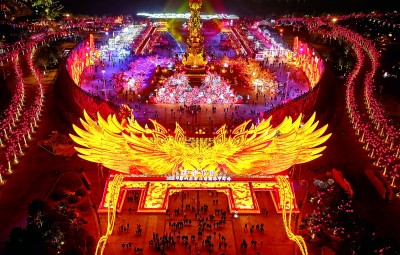 在上海,備受期待的豫園燈會已經亮燈啟幕。伴著夜色步入豫園,古老的飛檐亭臺與璀璨的花燈交相輝映?!斑@里的奇獸異鳥造型新奇又震撼,我們就如同漫步于一個奇幻世界中。”江蘇無錫的游客李進深有感觸。
