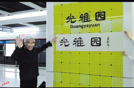 站在站名前,他像見(jiàn)到自己的孩子一樣,輕撫字跡,眼眶濕潤(rùn),笑不攏嘴??扉T(mén)按下,老人與站名同框的瞬間,被網(wǎng)友稱為“跨越時(shí)空的相遇”。