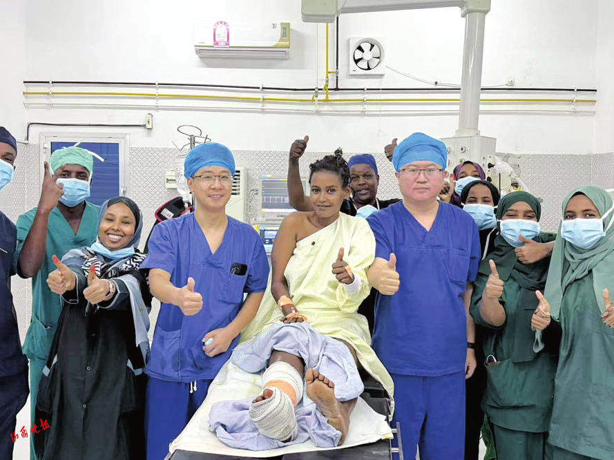 在麻醉的作用下,患者全程清醒、無痛。骨科醫(yī)生楊青則憑借熟練的手術(shù)操作,成功為她實(shí)施了創(chuàng)面皮膚軟組織清創(chuàng)術(shù)。患者術(shù)后恢復(fù)良好,對醫(yī)療隊(duì)的精湛醫(yī)術(shù)和無私奉獻(xiàn)表示由衷的感謝。她表示,從未想過在吉布提能夠接受到如此卓越非凡的醫(yī)療服務(wù),感謝中國醫(yī)療隊(duì)的到來,為自己帶來了希望。