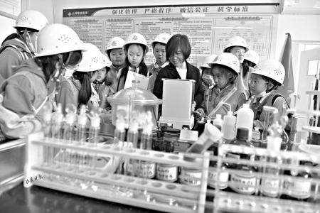 走進(jìn)化驗(yàn)室,小記者們很快被眼前的儀器設(shè)備吸引?!斑@里是糧食的‘體檢中心’,每一批糧食運(yùn)進(jìn)糧庫(kù)前,都要先在這體檢,合格了才能入庫(kù)?!惫ぷ魅藛T的話(huà)讓孩子們瞬間安靜,紛紛湊到儀器前仔細(xì)觀察。