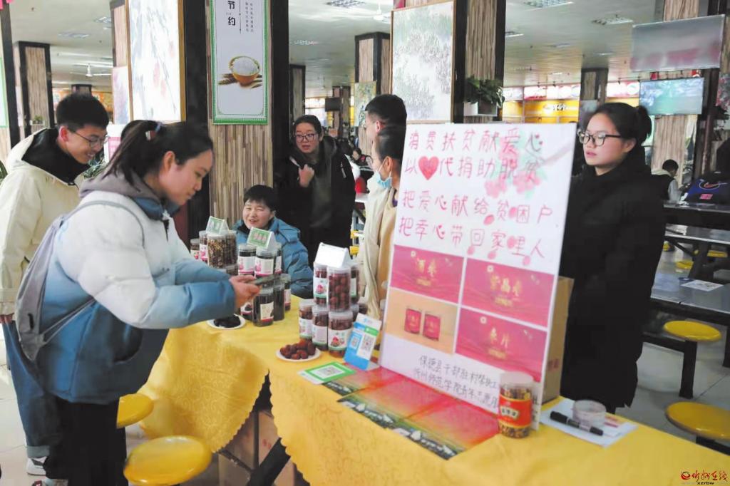 圖為該院學(xué)生以微信支付購買保德紅棗。 本報訊 近年來,忻州師范學(xué)院扶貧工作隊主動擔(dān)當(dāng)作為,以農(nóng)民增收為重點,以脫貧摘帽為目標(biāo),在高標(biāo)準(zhǔn)、高質(zhì)量推進(jìn)精準(zhǔn)扶貧各項工作的同時,持續(xù)開展消費扶貧活動。日前,扶貧工作隊又聯(lián)合保德縣楊家灣鎮(zhèn)及郭家灣村、孫家梁村村委會,開展“以購代捐”活動,切實幫助結(jié)對幫扶村農(nóng)民解決農(nóng)產(chǎn)品滯銷問題。 為切實做好幫扶村扶貧工作,增加農(nóng)民收入,忻州師范學(xué)院黨委結(jié)合實際,創(chuàng)新舉措,自2018年以來,構(gòu)建“以購代捐”長效工作機制,鼓勵全院黨員干部走進(jìn)幫扶點,以購買農(nóng)副產(chǎn)品的形式,讓定點幫扶村農(nóng)產(chǎn)品“走出去”, 激活“線上線下”銷售雙渠道,促進(jìn)農(nóng)民增收,受到了農(nóng)戶和師生的一致歡迎,取得了良好的經(jīng)濟效益和社會效益,形成了該校扶貧工作的一大亮點。2020年國慶節(jié)前后,在定點幫扶點保德縣楊家灣鎮(zhèn)楊家灣村、郭家灣村收購了8萬余元的紅棗、小雜糧等特色產(chǎn)品。其中,4萬余元為結(jié)對幫扶人“以購代捐”,其余為院工會“以購代捐”用于職工福利,切實解決了疫情防控特殊形勢下定點幫扶村農(nóng)產(chǎn)品面臨的銷售難題,切實做到“幫扶不斷檔”,進(jìn)一步促進(jìn)了農(nóng)民增收、鞏固了脫貧成果。2020年12月通過“832”扶貧平臺采購保德縣價值44.6萬余元的農(nóng)副產(chǎn)品作為教職工2021年春節(jié)福利。與此同時,在廣大師生中組織開展 “以購代捐”獻(xiàn)愛心活動。廣大師生積極響應(yīng)學(xué)院黨委號召,踴躍參與消費扶貧活動,購買了價值3.2萬余元的酒棗、棗片、紫晶棗等特產(chǎn),形成了全院全員關(guān)注扶貧、參與扶貧的生動局面。 “以購代捐”活動改變了以往的捐贈模式,讓定點幫扶村的產(chǎn)品變成了商品,有效解決了農(nóng)產(chǎn)品銷路問題,既激發(fā)了農(nóng)民群眾努力生產(chǎn)、勤勞致富的積極性,又拉近了廣大師生與農(nóng)民的距離,形成了“我勤勞、我致富”“我參與、我幸?!钡牧己梅諊?。 (武大力) (責(zé)任編輯:盧相汀) |