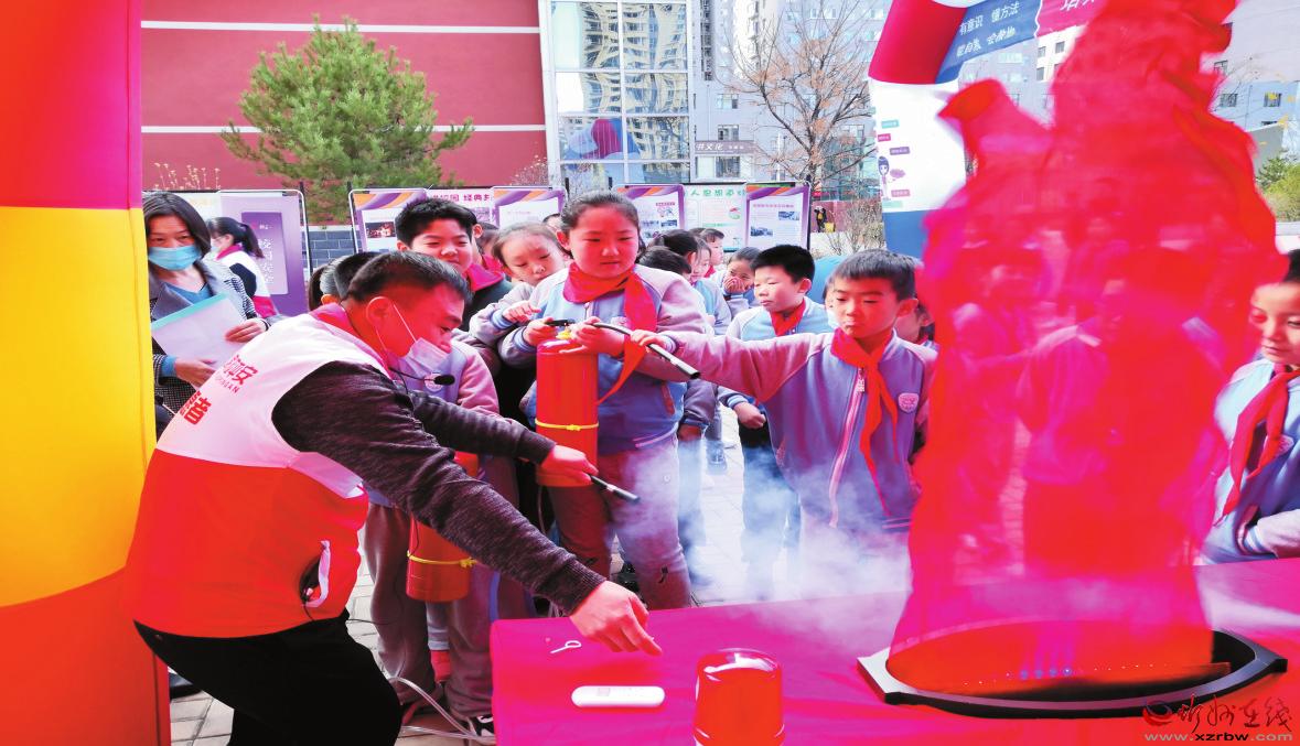 “家校平安”志愿者指導學生使用滅火器