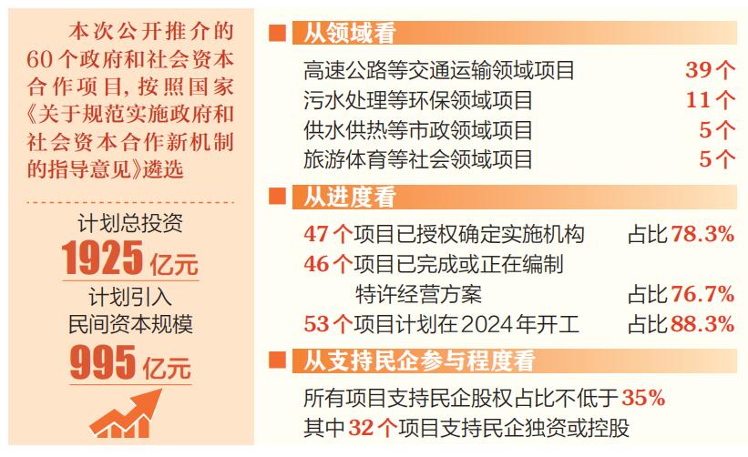 山西日?qǐng)?bào)訊(記者姚毅)為進(jìn)一步拓寬民間投資領(lǐng)域,促進(jìn)民營(yíng)經(jīng)濟(jì)發(fā)展壯大,根據(jù)省委、省政府部署,省發(fā)展改革委按季組織向民間資本推介項(xiàng)目,鼓勵(lì)民營(yíng)企業(yè)以獨(dú)資控股參股等形式參與政府和社會(huì)資本合作項(xiàng)目。近日,省發(fā)展改革委會(huì)同省交通運(yùn)輸廳和相關(guān)市,遴選了60個(gè)擬實(shí)施的政府和社會(huì)資本合作項(xiàng)目,向民間資本公開(kāi)推介。