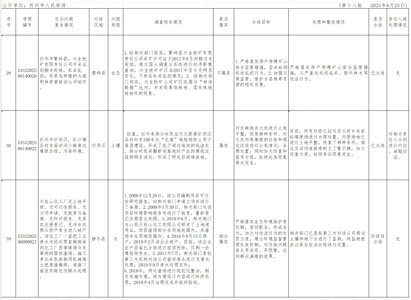 中央生態(tài)環(huán)境保護(hù)督察組群眾信訪舉報(bào)轉(zhuǎn)辦和邊督邊改公開(kāi)情況一覽表(第十八批).xlsx